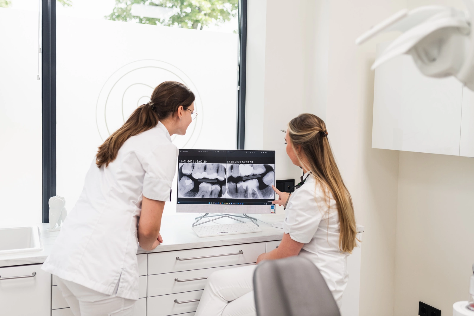 Op deze manier zorgen wij dat problemen tijdig worden gediagnosticeerd terwijl we de straling tot een minimum beperken. Iedere patiënt wordt hierin individueel beoordeeld, zodat röntgenfoto’s alleen worden gemaakt wanneer dit echt nodig is.