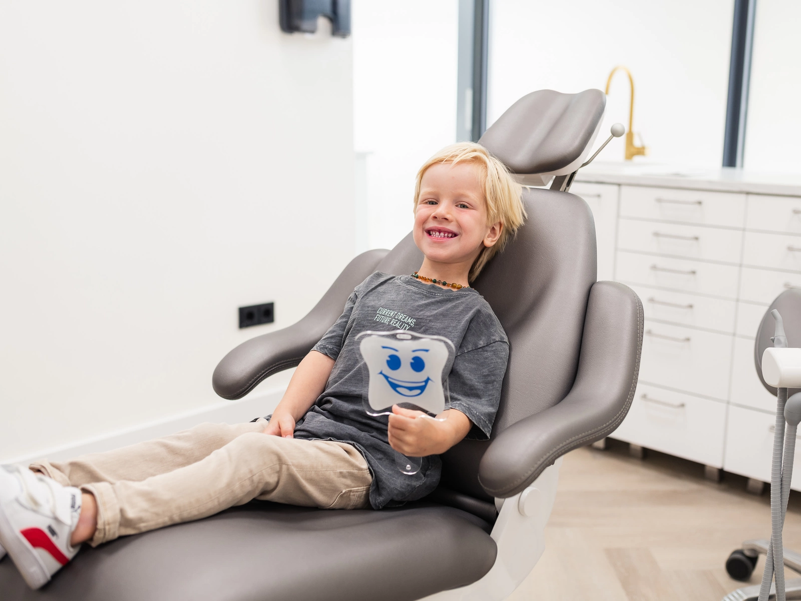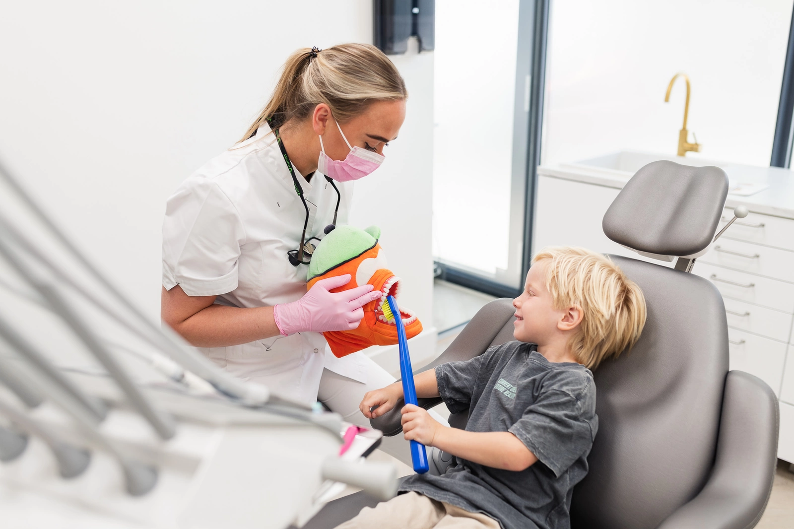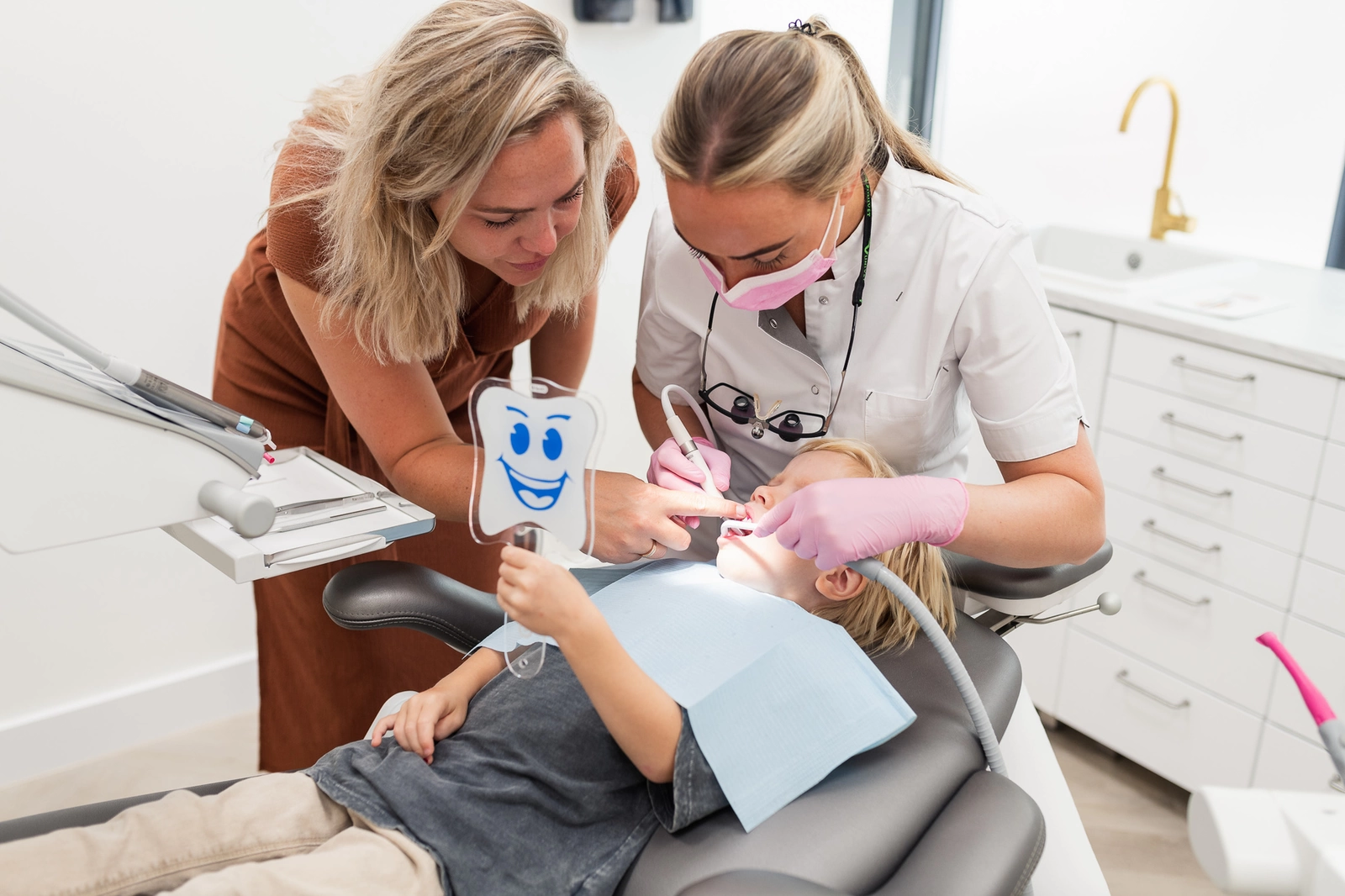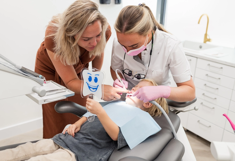 Kinderen zijn welkom vanaf de doorbraak van hun eerste tandje. Vanaf 2 jaar is het volledige melkgebit aanwezig en is het belangrijk om het gebit regelmatig te laten controleren door een mondzorgprofessional. Spelenderwijs wennen kindjes bij onze mondhygiënisten om in een tandartsstoel te liggen en dat er in hun mondje gewerkt wordt. Iedere keer proberen we een stapje verder te wennen. Door middel van een roze kleurstof kunnen we de mondhygiëne beoordelen en gericht advies, instructie en voorlichting kunnen geven aan ouder en kind.